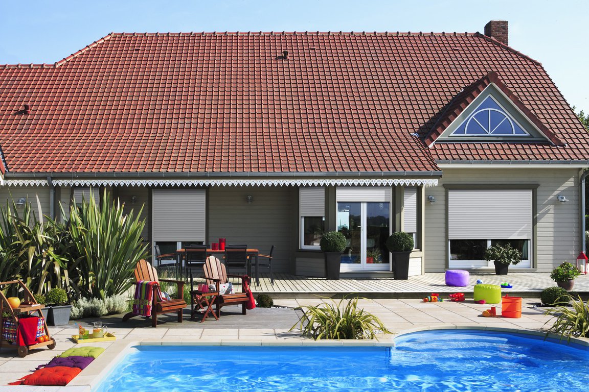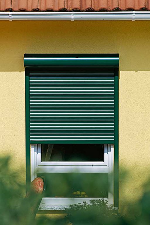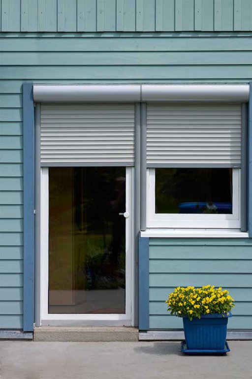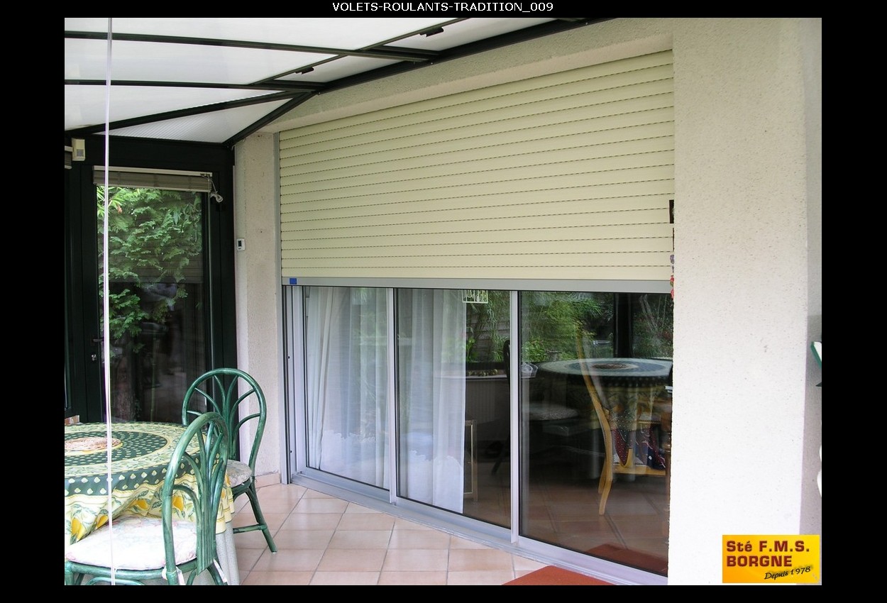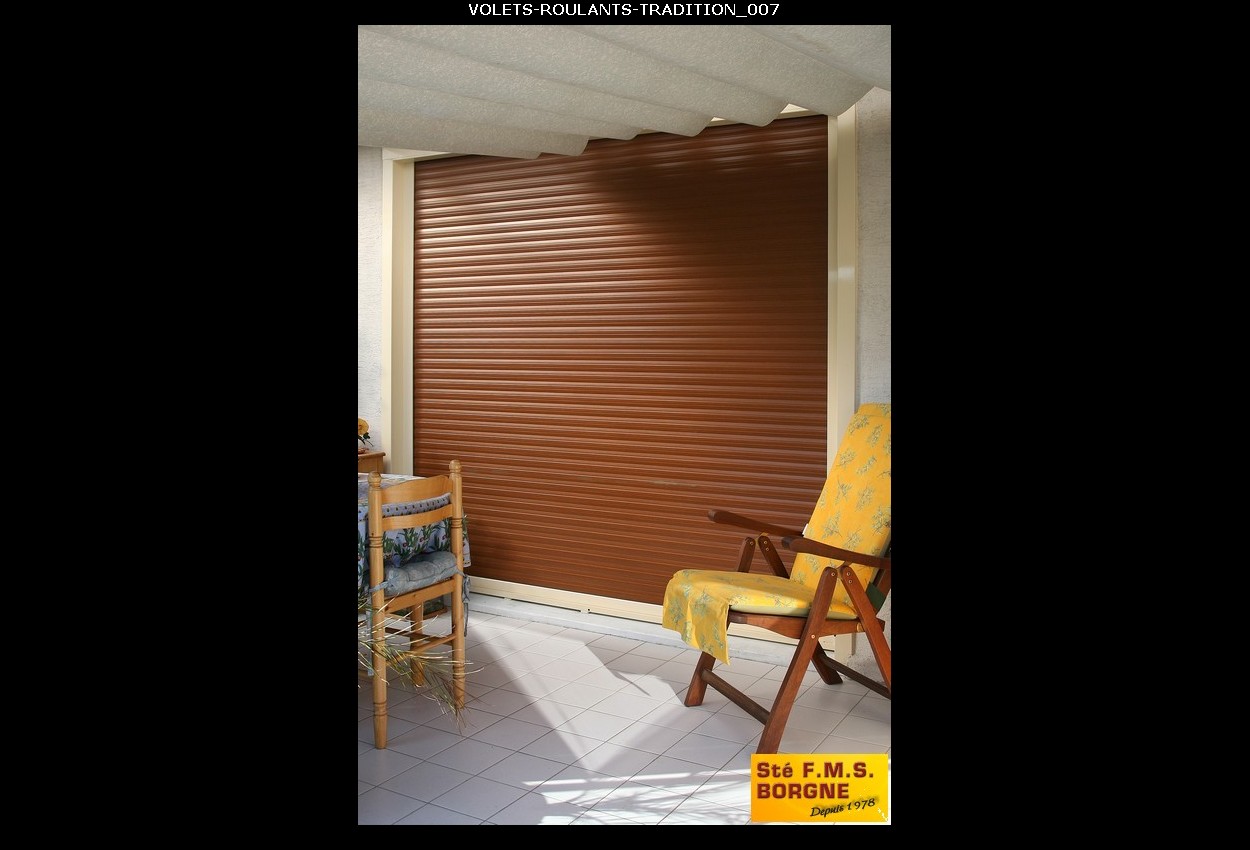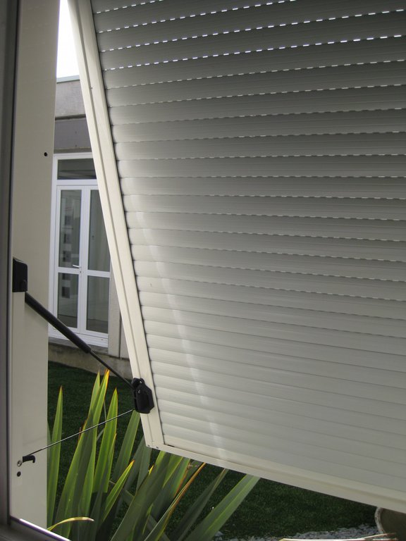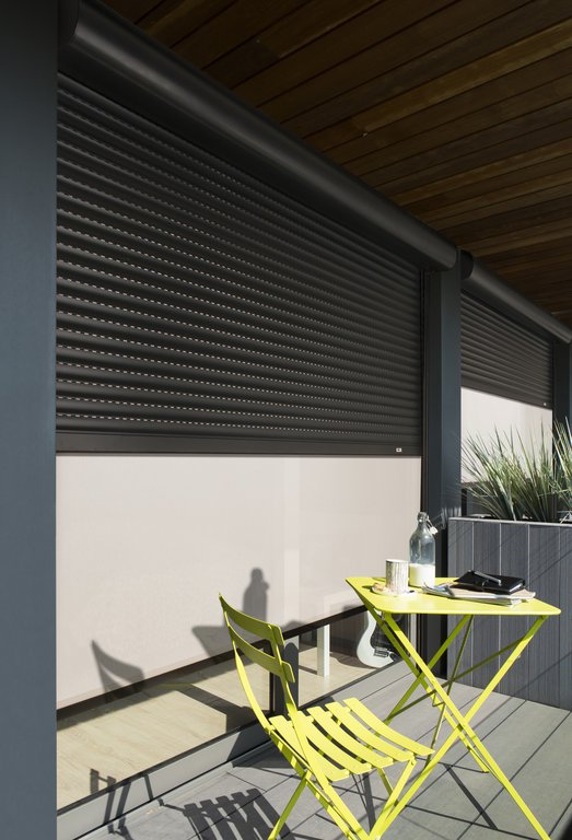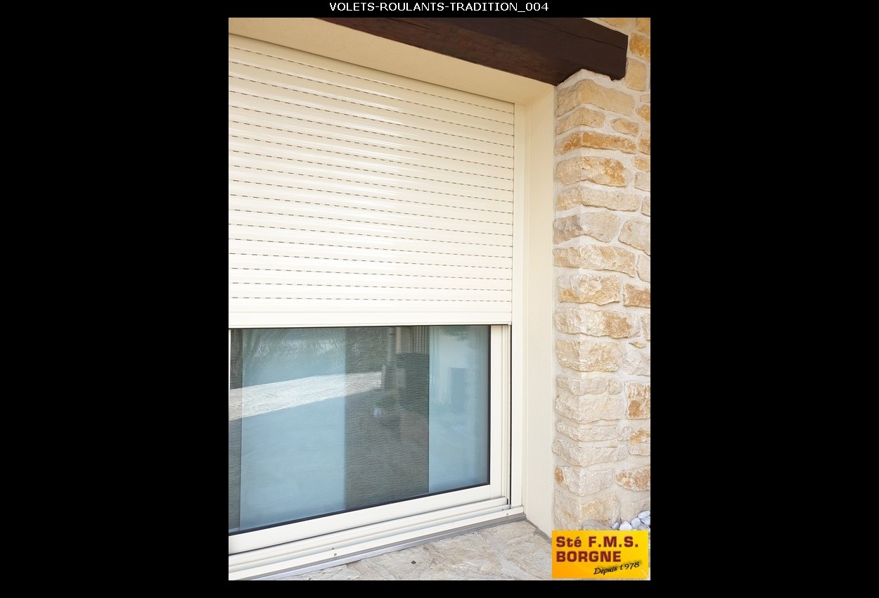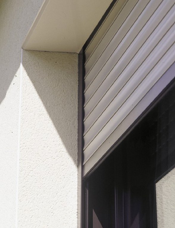 Le volet roulant traditionnel en aluminium ou PVC s’enroule dans un coffre existant.