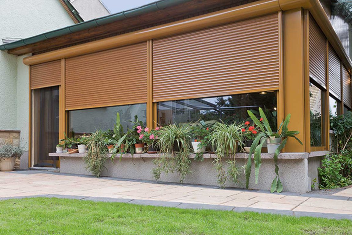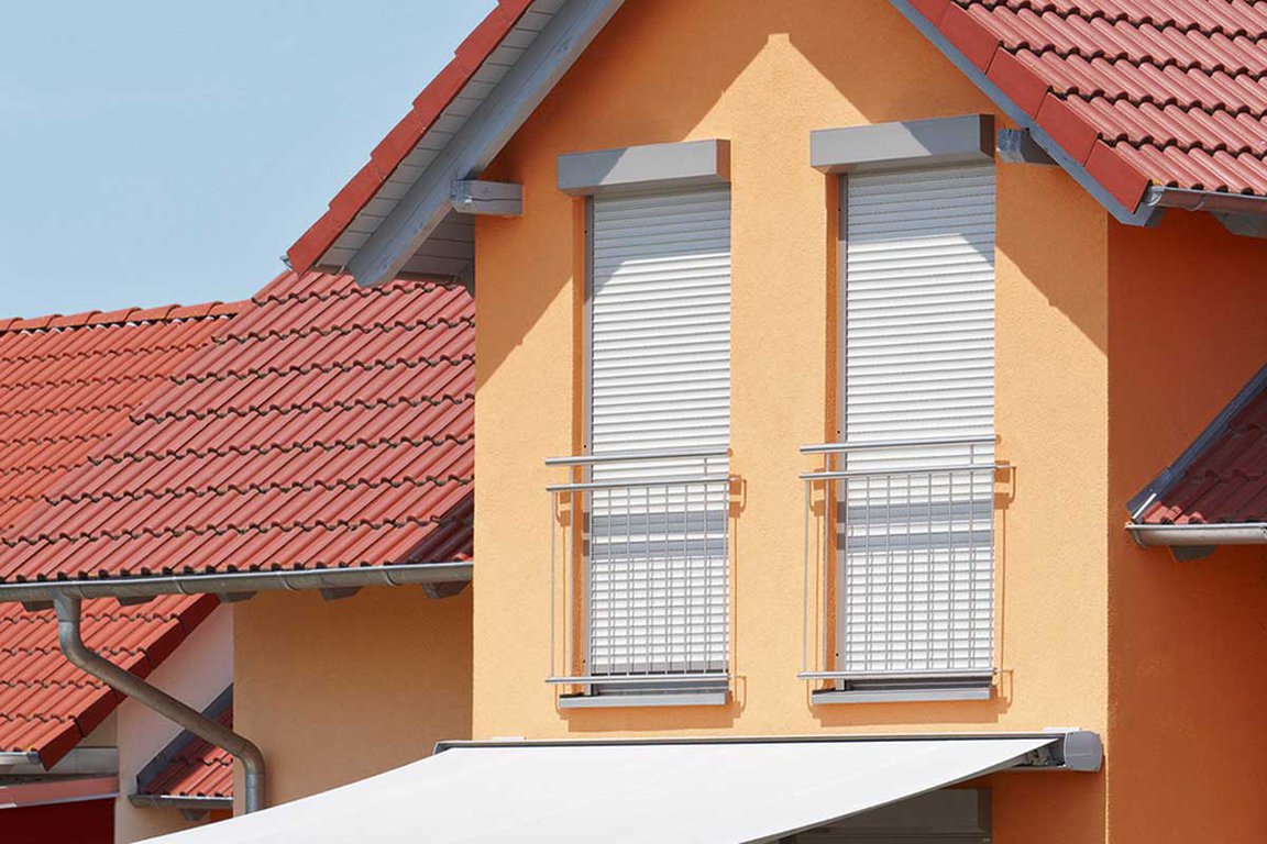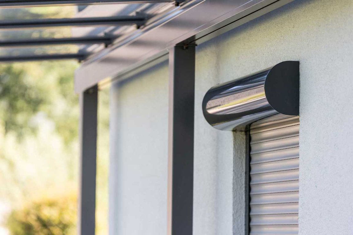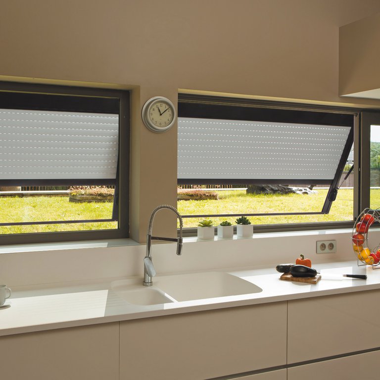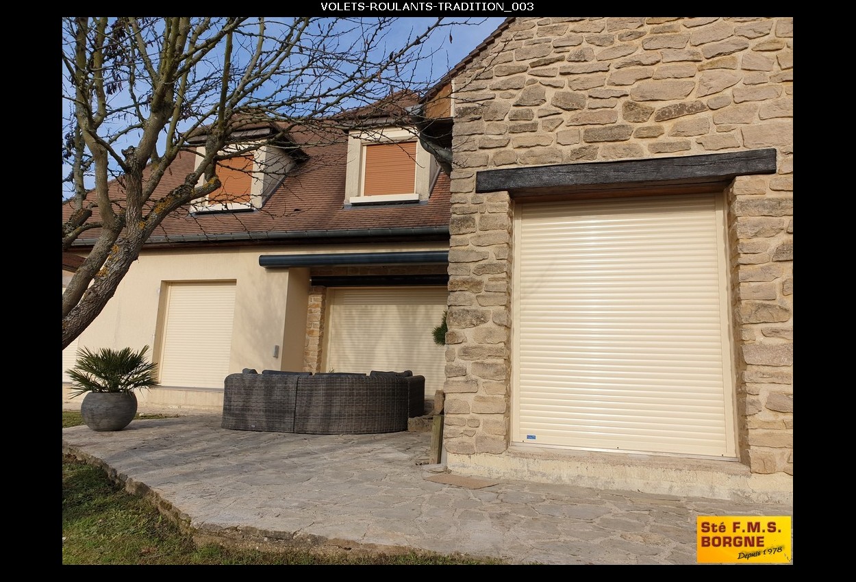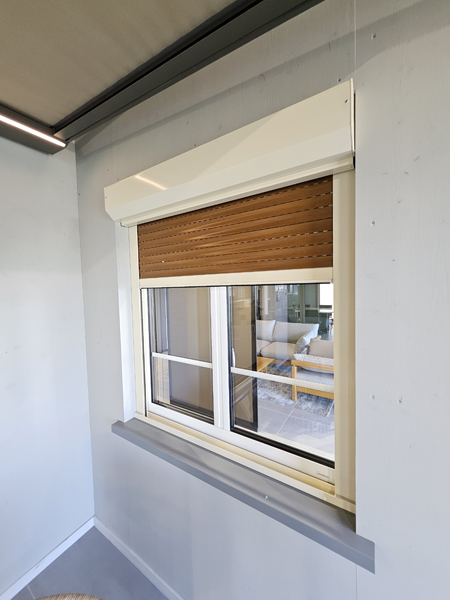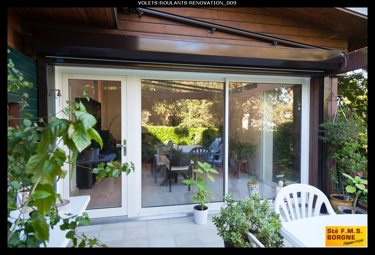 Le volet roulant traditionnel en aluminium ou PVC s’enroule dans un coffre existant.