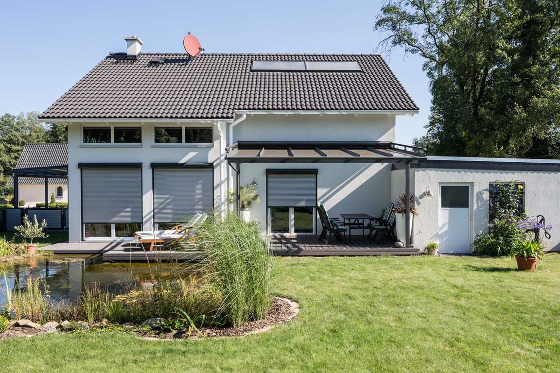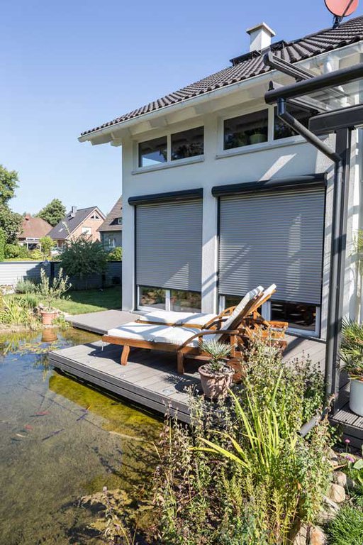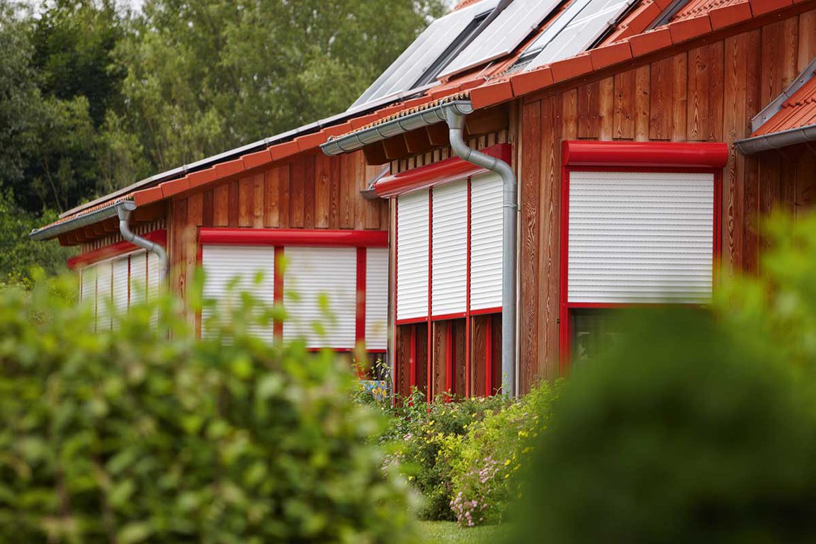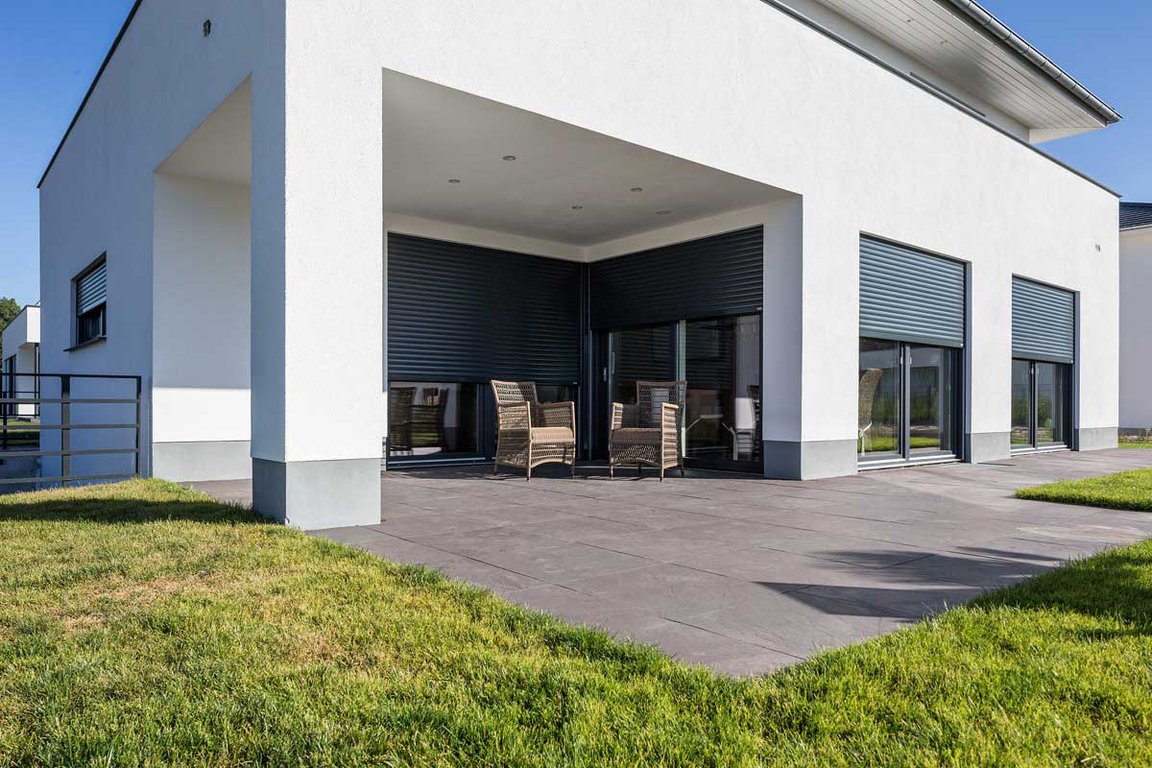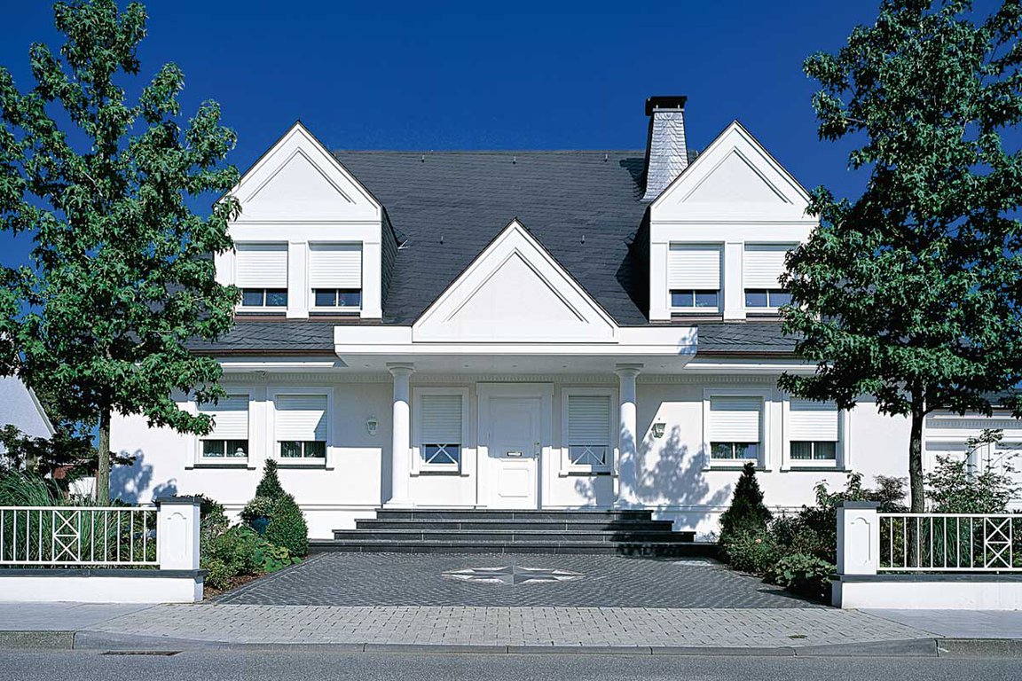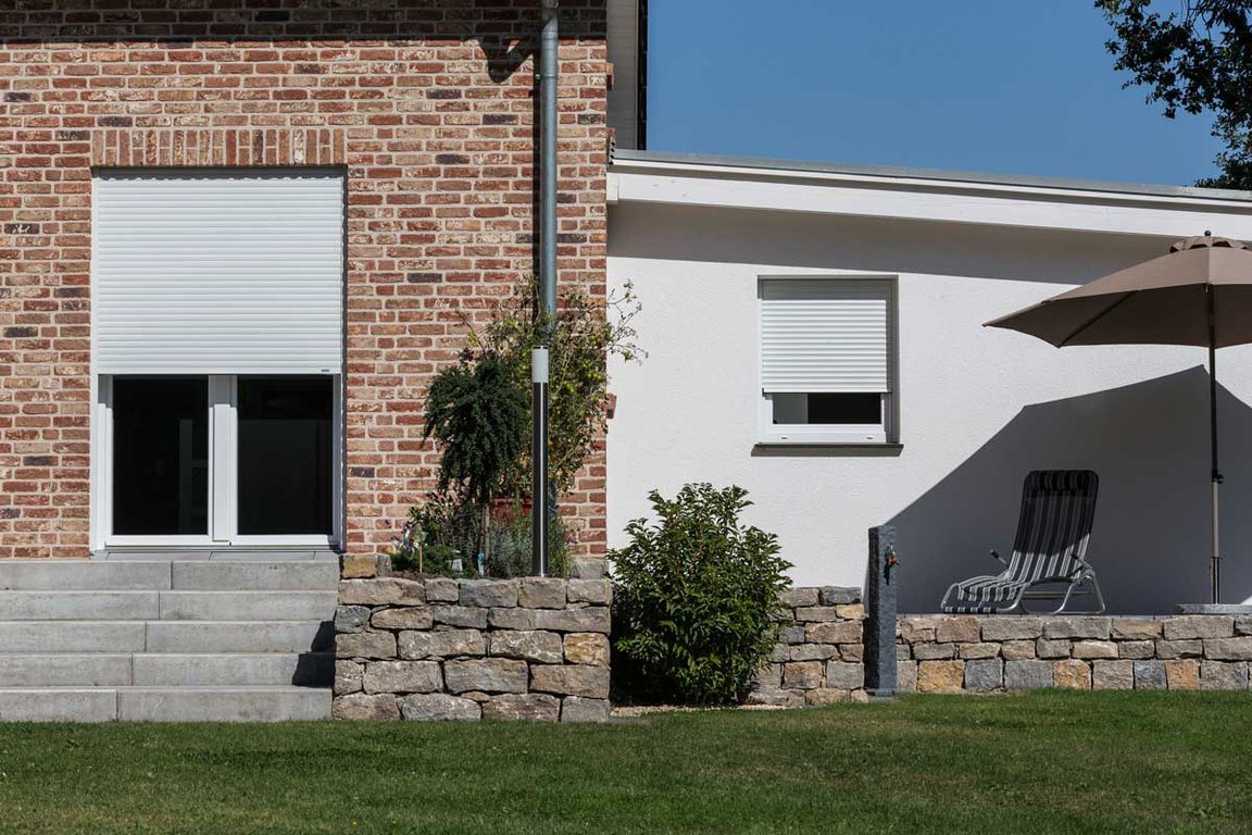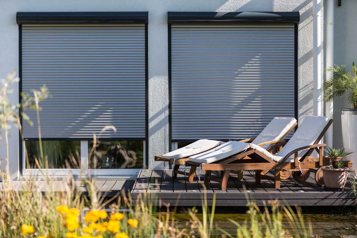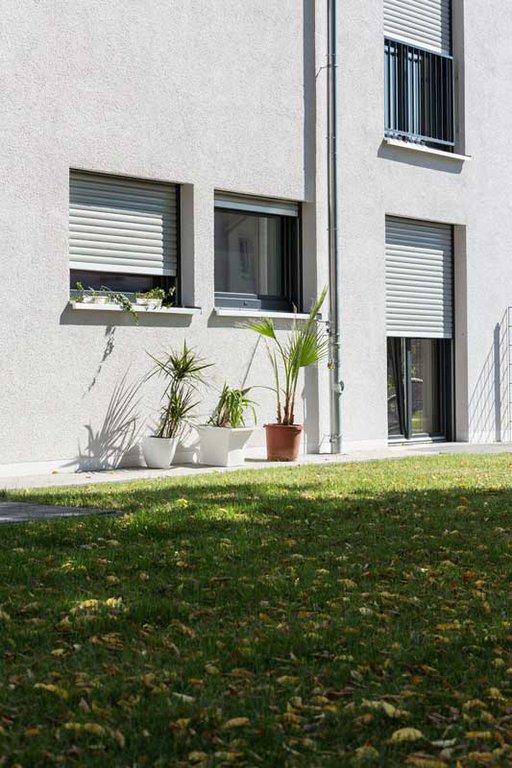 Le volet roulant traditionnel en aluminium ou PVC s’enroule dans un coffre existant.